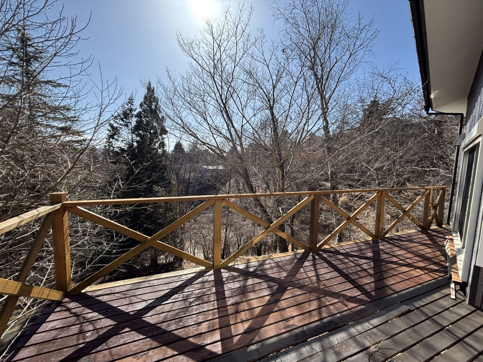 リビングからつながるデッキの向こうは大自然が広がり隣家などは視界に入らないので贅沢な気分に浸れそうです。