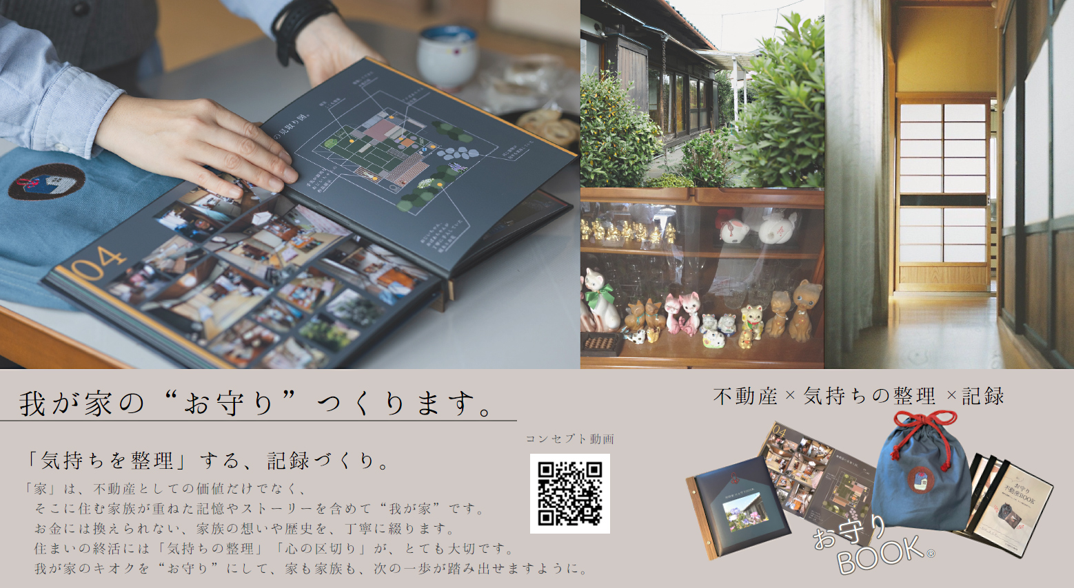 その家での思い出や家族の想いを写真やエピソードとして記録し、心の整理をサポートするオーダーメイドサービスで、住宅のプロである宅建士が寄り添い、家と家族の歴史を1冊の本に紡ぎ、次のステップへ進むための「心の整理」を手助けします。 制作過程で「気持ちの整理」に伴走し、家族と家が、次に進むための“心の土台作り”ができます。
