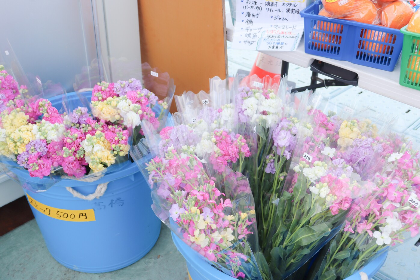 柑橘類の他にも食用の菜の花や、菜の花以外の花束なども販売されています。