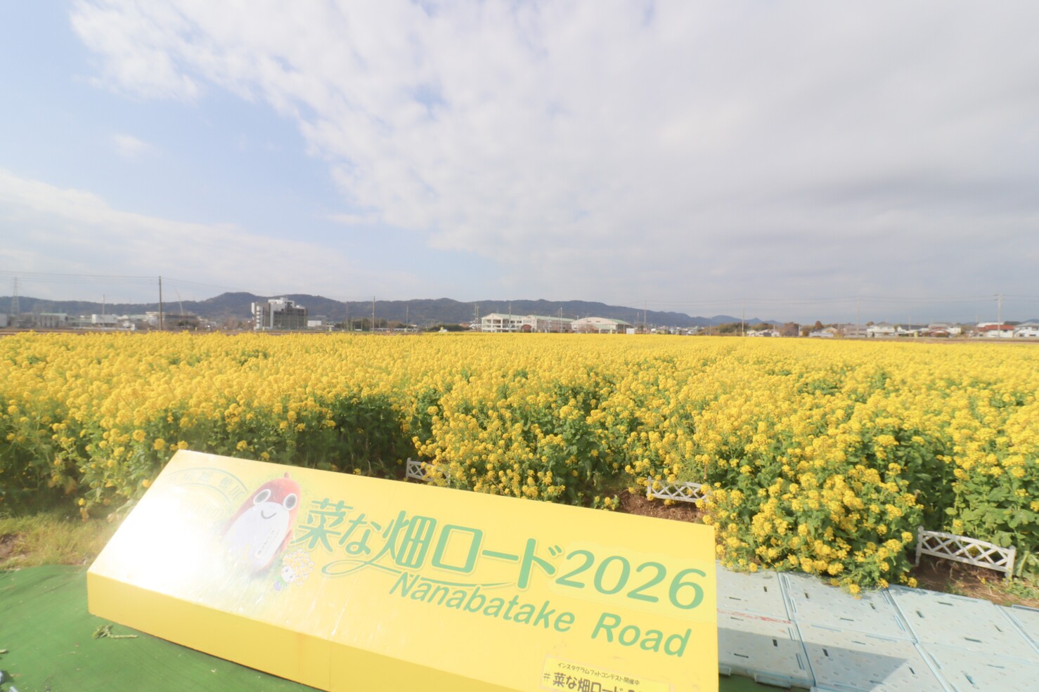 約1万坪の広い広い田んぼ一面を菜の花が埋め尽くす菜な畑ロードでは、