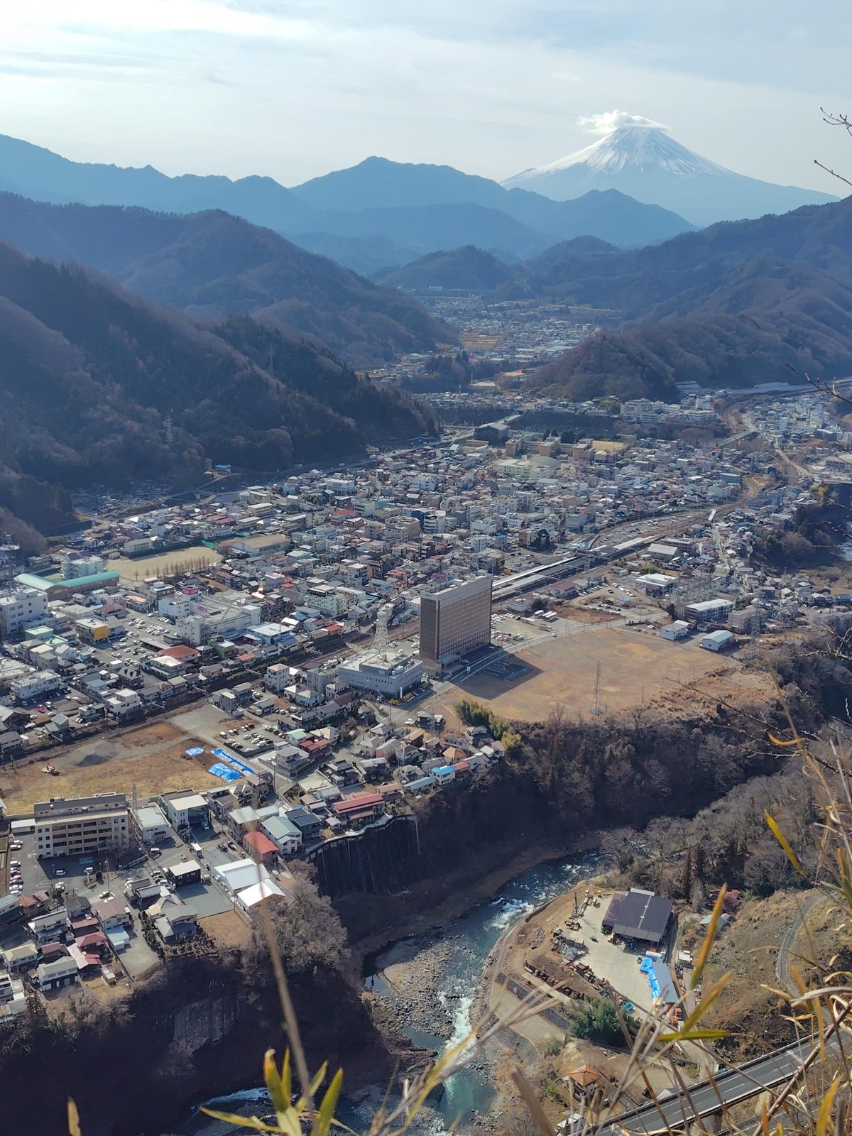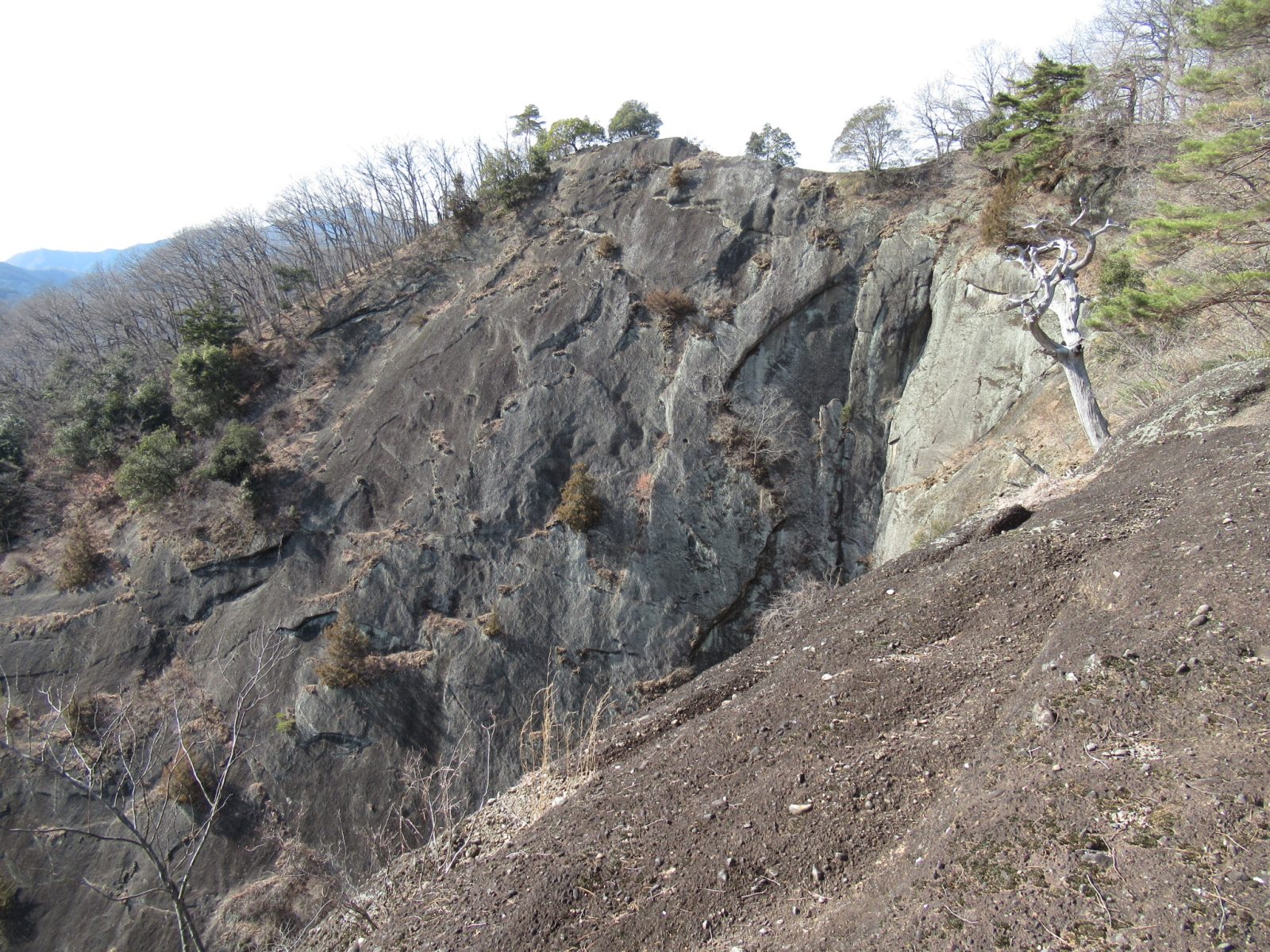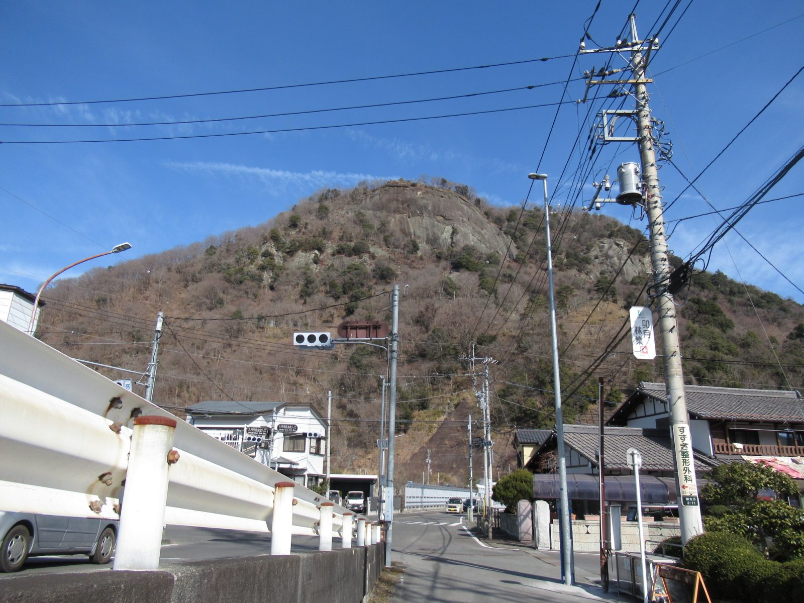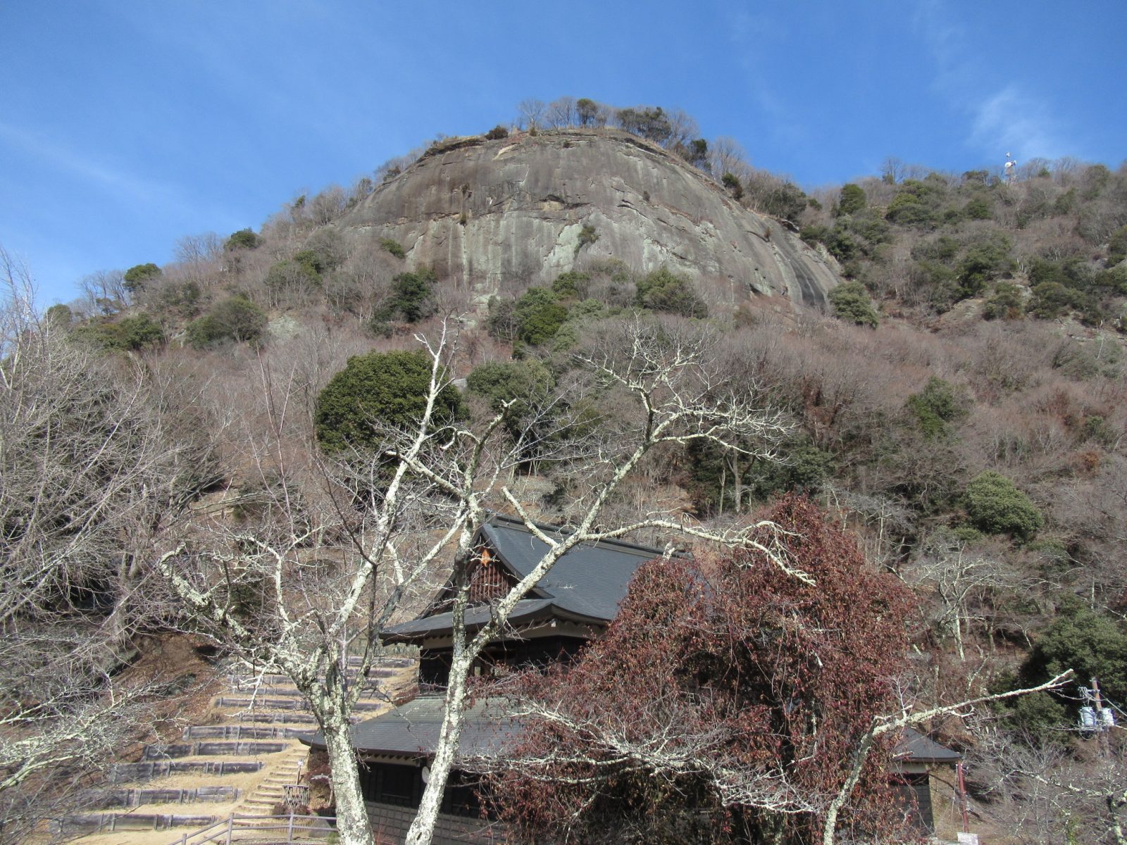 こんにちは八ヶ岳現地スタッフの岡村です。2月も後半になって嘘のように暖かい日が続いています。そんなある日、岩殿山に登って来ました。東京方面から甲府方面へ向かう中央本線、大月駅の手前から右手に姿を現す異形の山。岩に蔽われたというより岩を纏った姿の岩殿山。電車の窓から視野に入ってきて気になっていた山です。