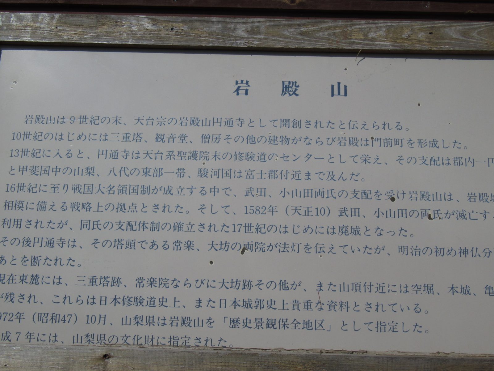 なにやら書かれています。岩殿山は城山でもありました。
