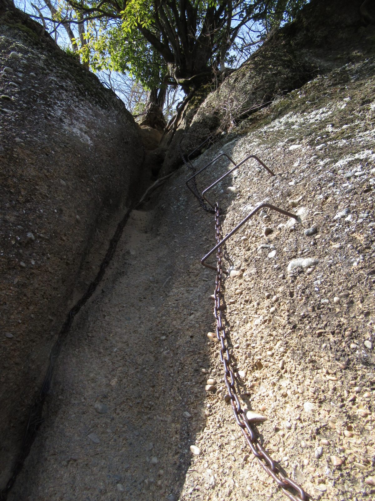織田軍勢に責められ敗走する小山田氏、連れてきた幼子が泣き出します。居場所を知られるのを恐れ、容赦なく子供をこの断崖絶壁から放り投げたという伝説があります。「稚児落とし」の哀しい名前の由来です。