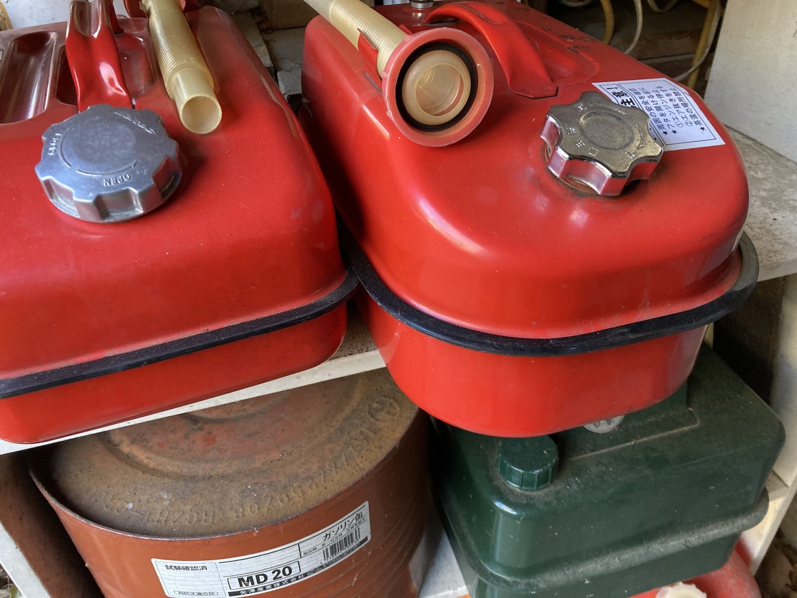 田舎暮らしでは、チェーンソー、刈払い機の燃料の取り扱いにも注意