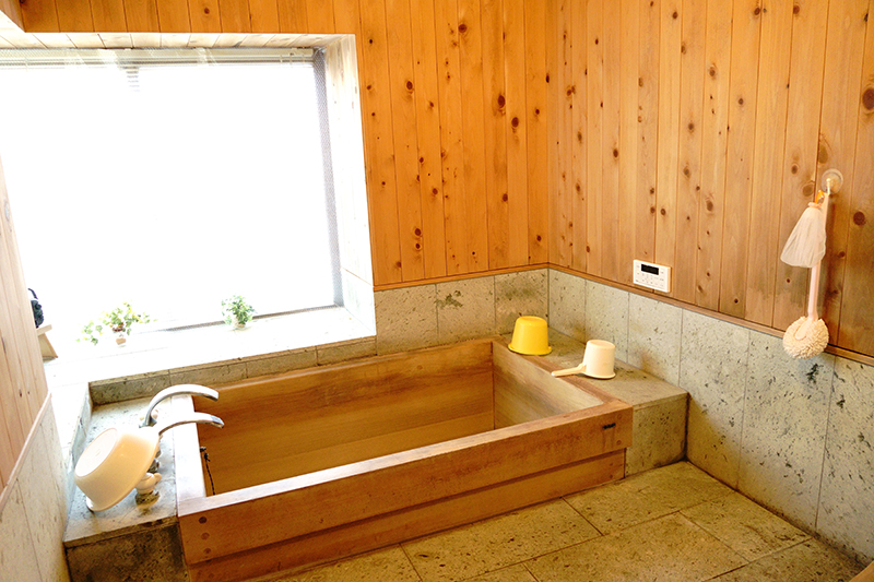 自然素材が活かされた木のぬくもりを感じる浴室に、大きな桧のお風呂はなんて贅沢。