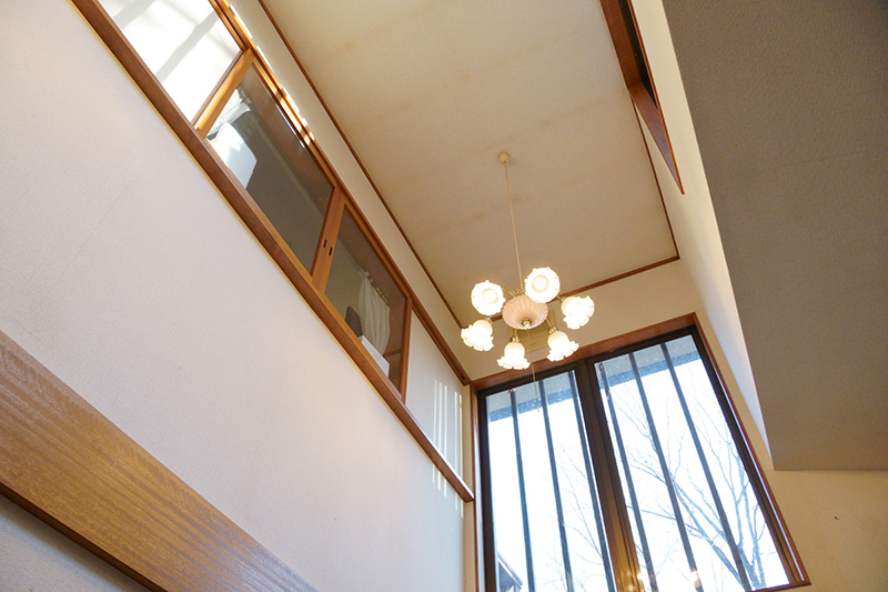 リビングは吹き抜けになっており、上部からたっぷりと光が差し込み、明るく開放的な空間が広がります。