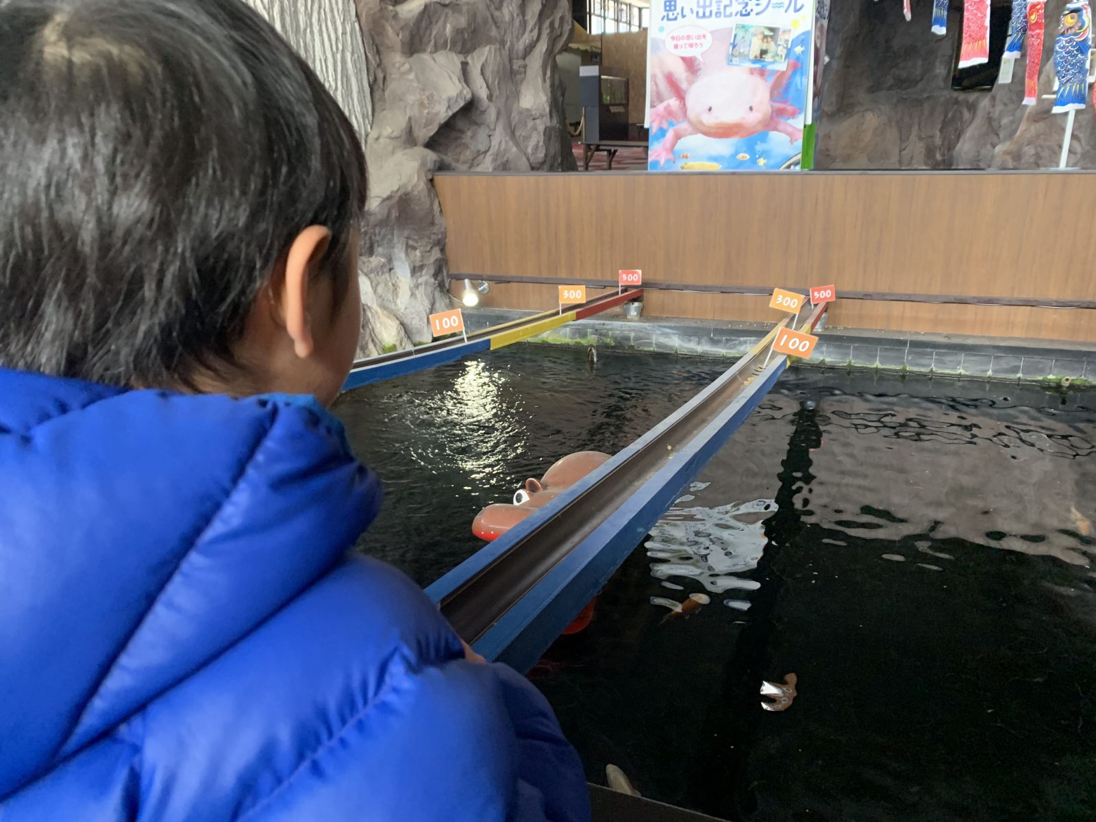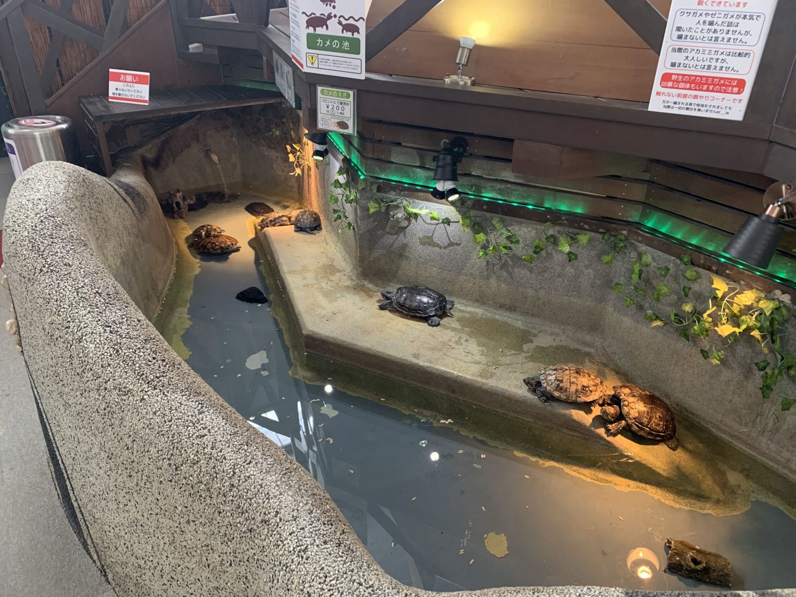 この水族館の面白いところは、魚との距離が近いこと。亀と、鯉にエサやり体験ができるコーナーもあり、触れ合いが出来て楽しい。子どもたちも大喜びです!(ただ冬場は冬眠中なのか、全然食べてくれなかったのですが、それも良い思い出です。)