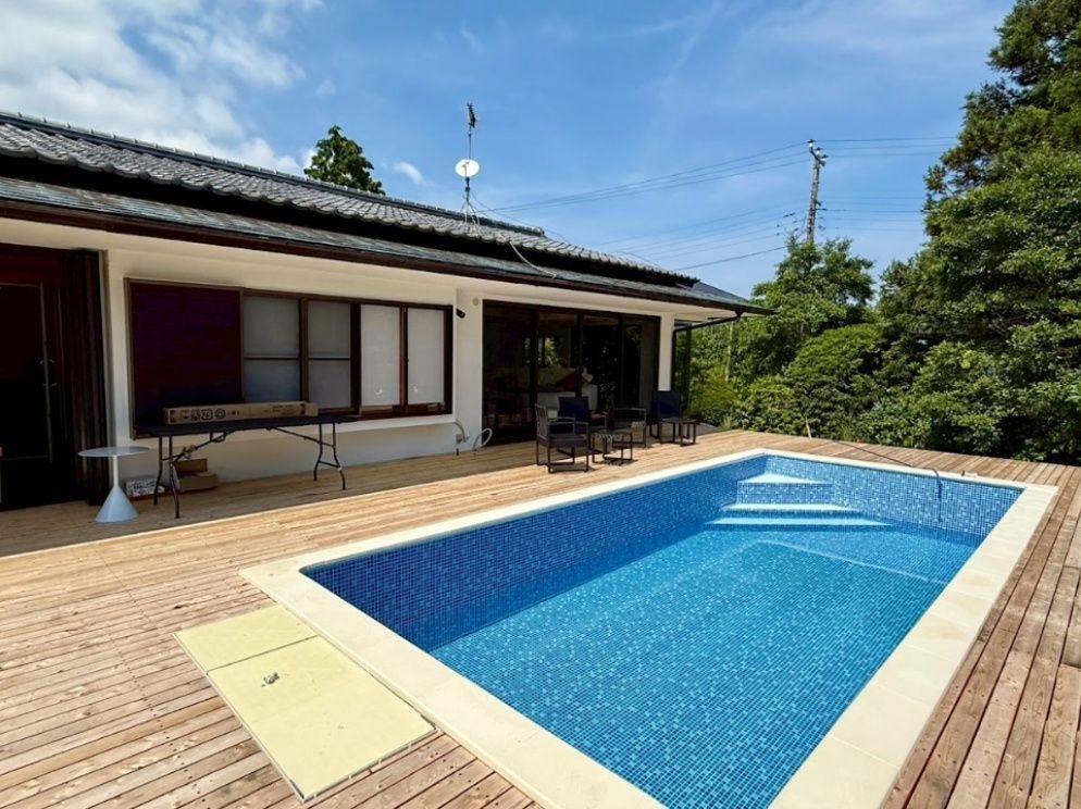 プール、温泉権利付き・2025年6月リノベーション済の平屋3LDK約600坪の広大な敷地!LDKは広々31帖・特注の檜風呂も新設!リビングから続くプールサ...